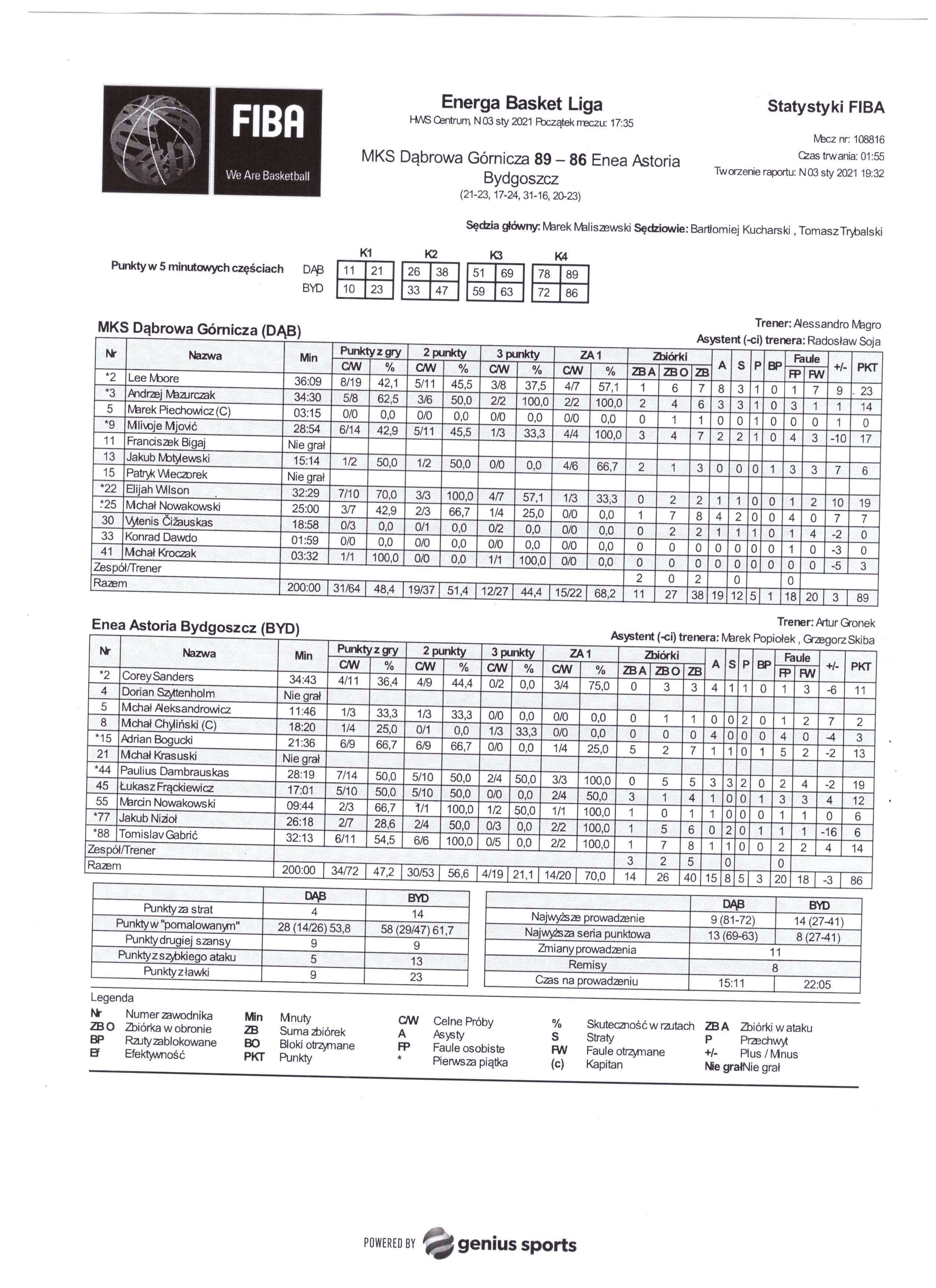 | Punkty graczy z ławki | 9 | 23 |
