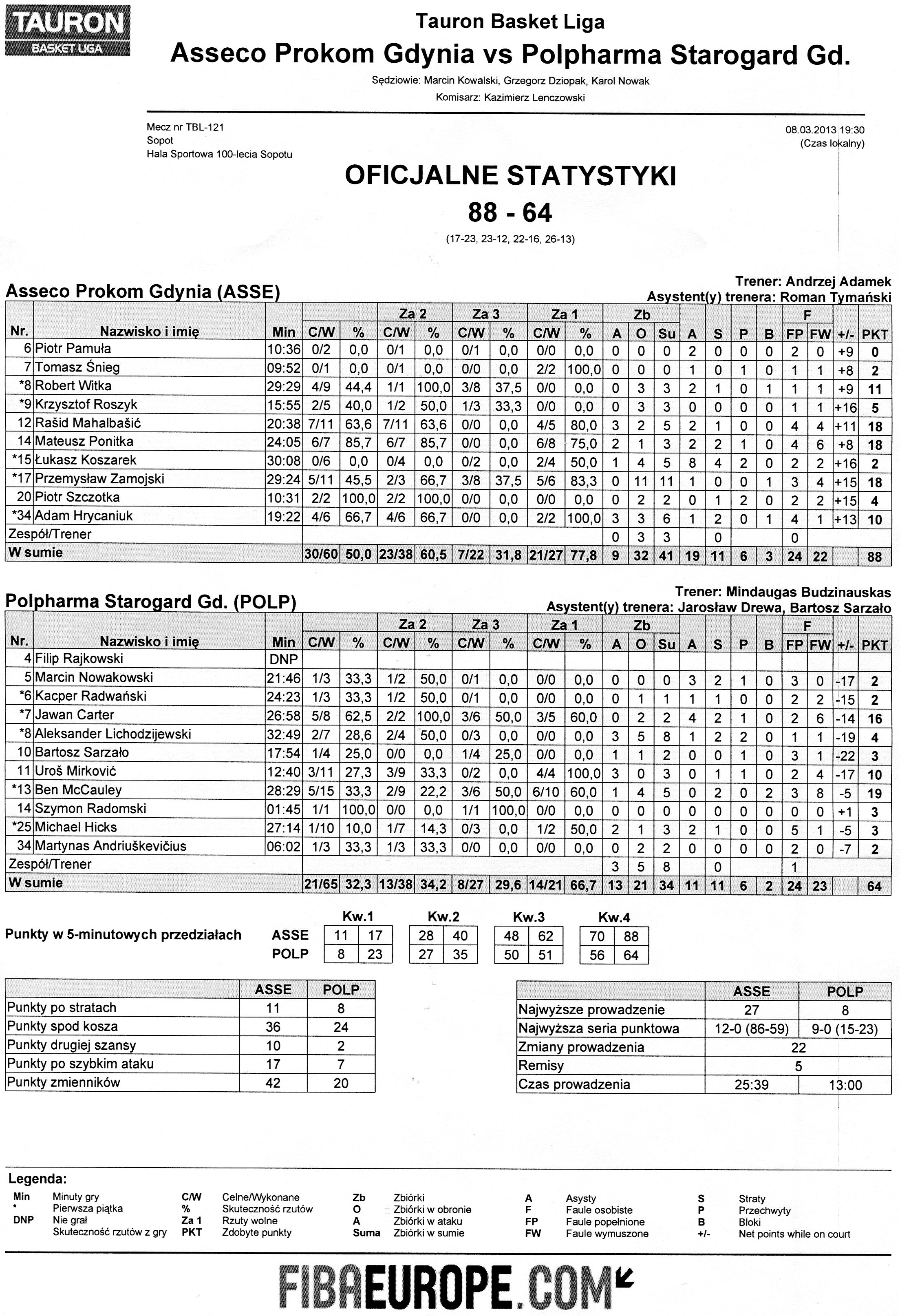 Runda Zasadnicza - Kolejka 21 8.03.2013 / 19:30Hala Sportowa 100-lecia Sopotu, ul. Jakuba Goyki 7, 81-817 Sopot17:23/23:12/22:16/26:13