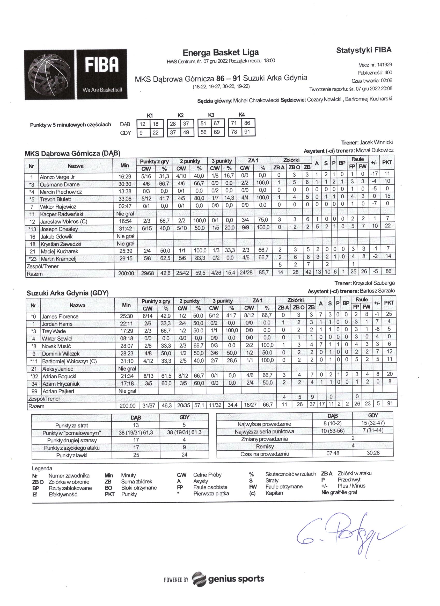 | Punkty graczy z ławki | 25 | 24 |