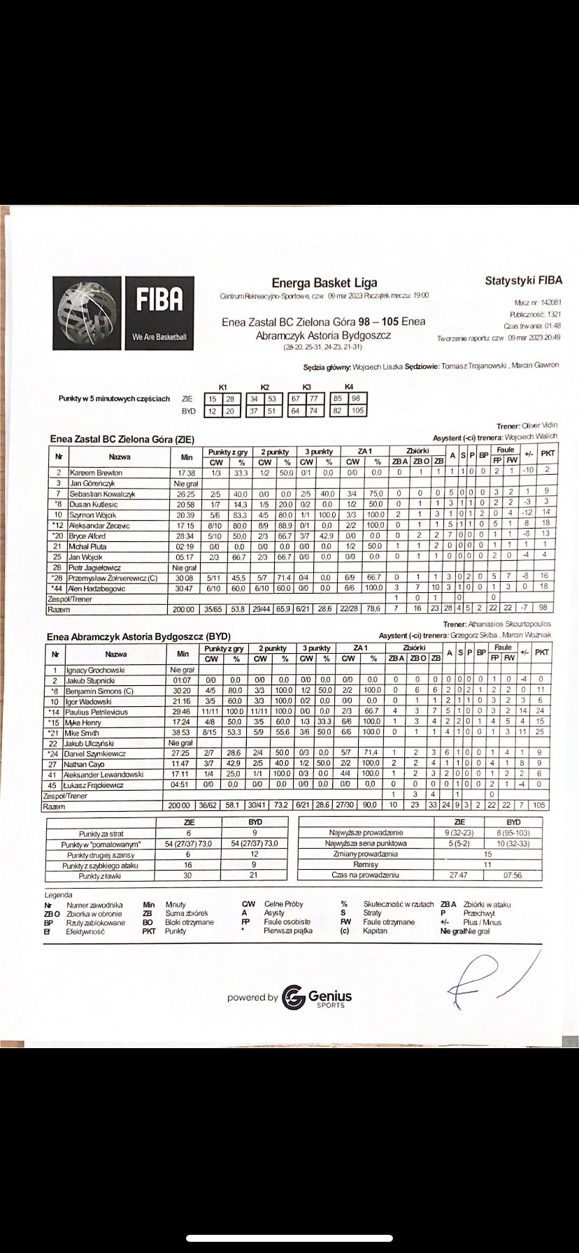 | Punkty graczy z ławki | 30 | 21 |