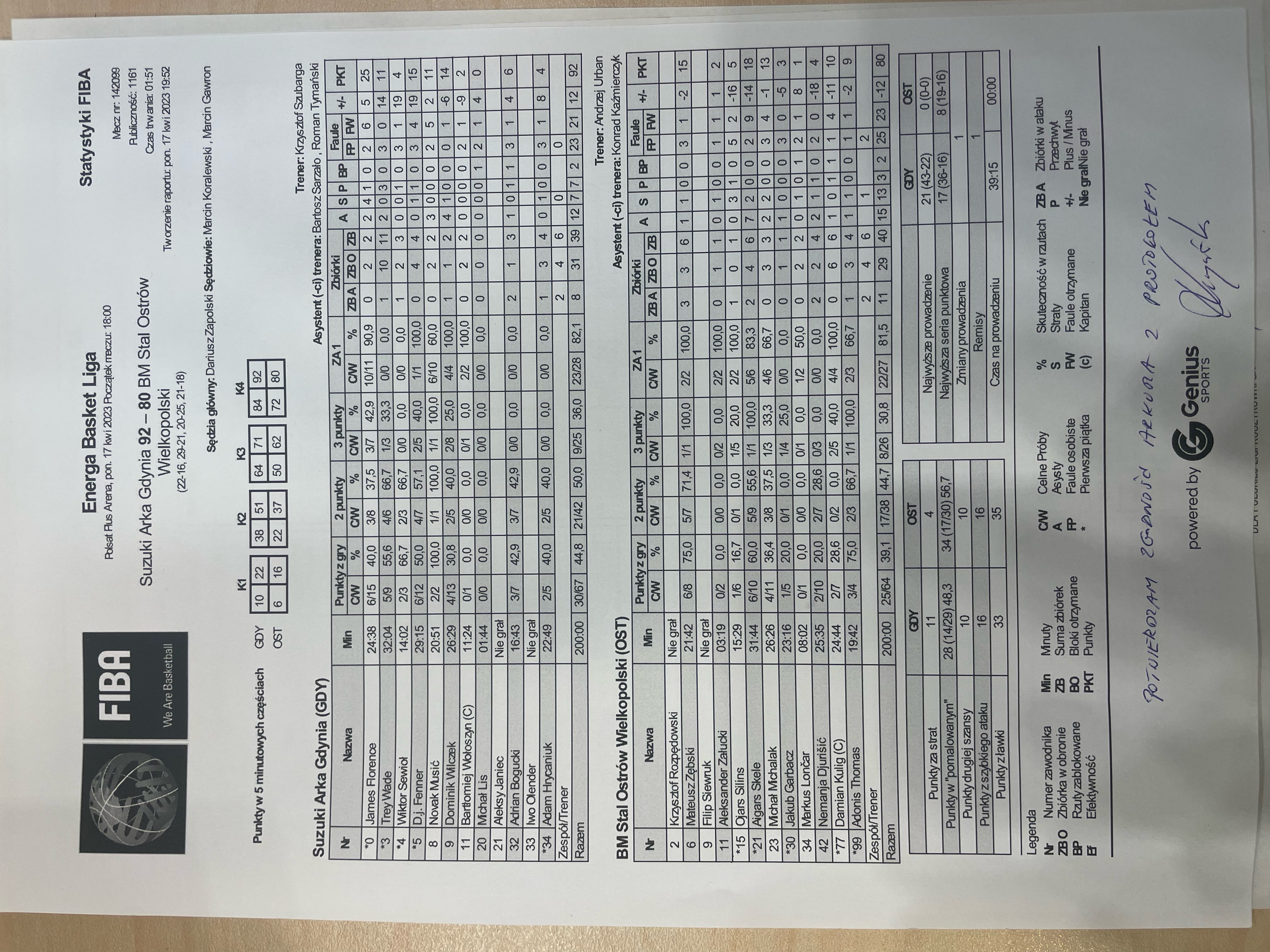 Runda Zasadnicza - 24 kolejka 17.04.2023 / 18:00Polsat Plus Arena Gdynia, ul. Kazimierza Górskiego 8, 81-304 Gdynia22:16/29:21/20:25/21:18
