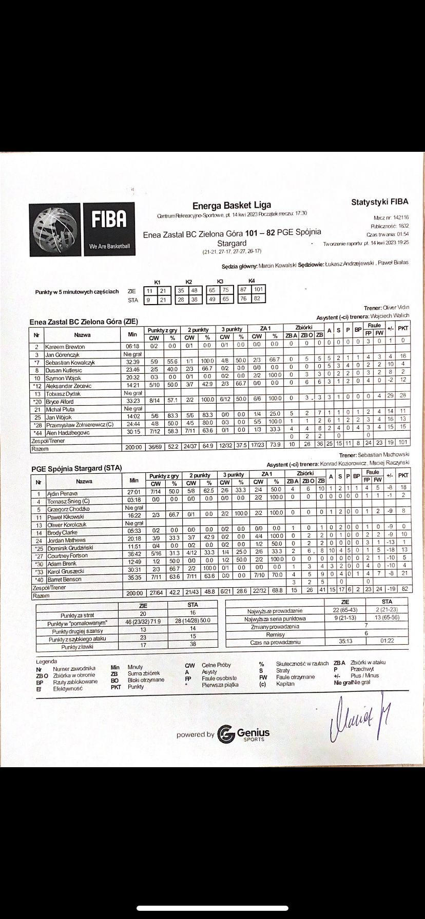 | Punkty graczy z ławki | 17 | 38 |