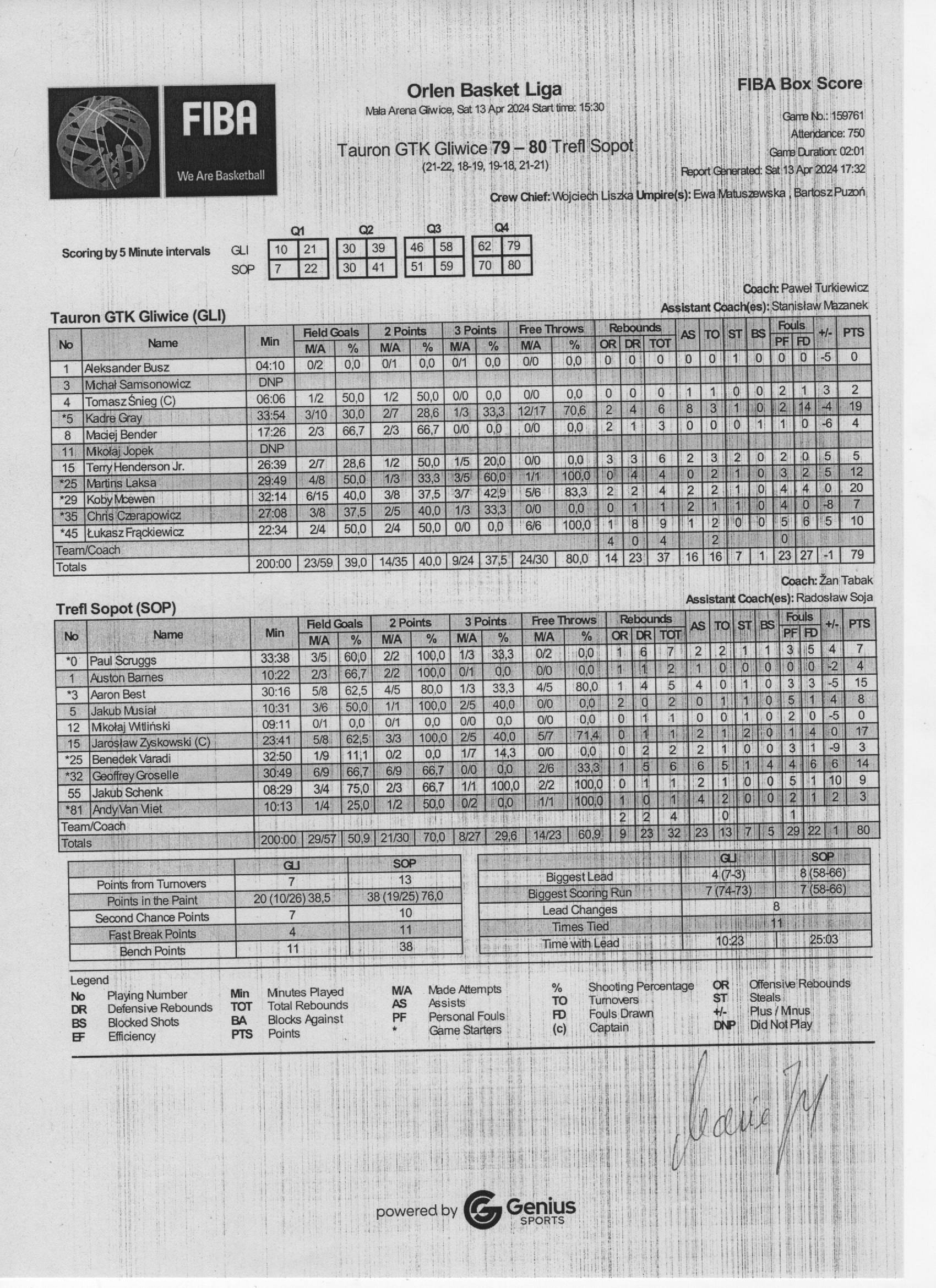 Runda Zasadnicza - 28 kolejka 13.04.2024 / 15:30Mała Arena Gliwice, Akademicka 50, 44-100 Gliwice21:22/18:19/19:18/21:21