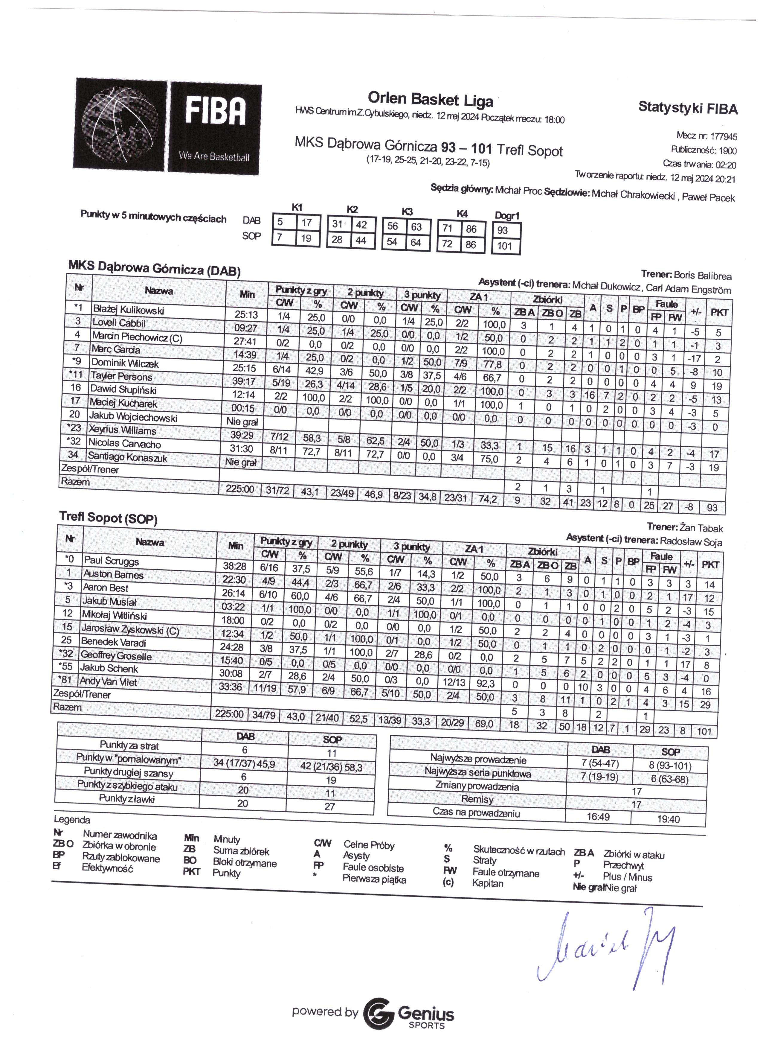 Ćwierćfinały - 4 mecz 12.05.2024 / 18:00HWS Centrum im.Z.Cybulskiego, Al. Róż 3, 41-300 Dąbrowa Górnicza17:19/25:25/21:20/23:22/7:15 (d)
