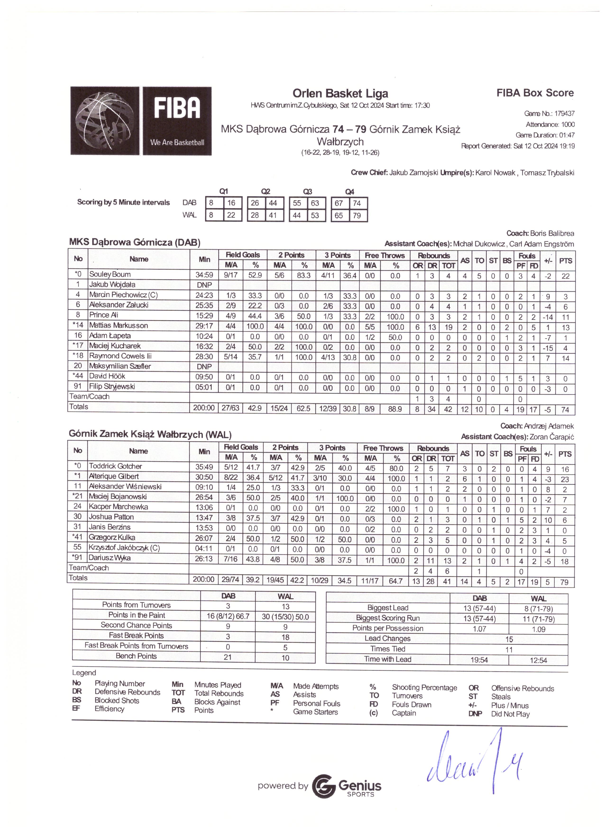 | Najwyższe prowadzenie | 13 57-44 | 8 71-79 |