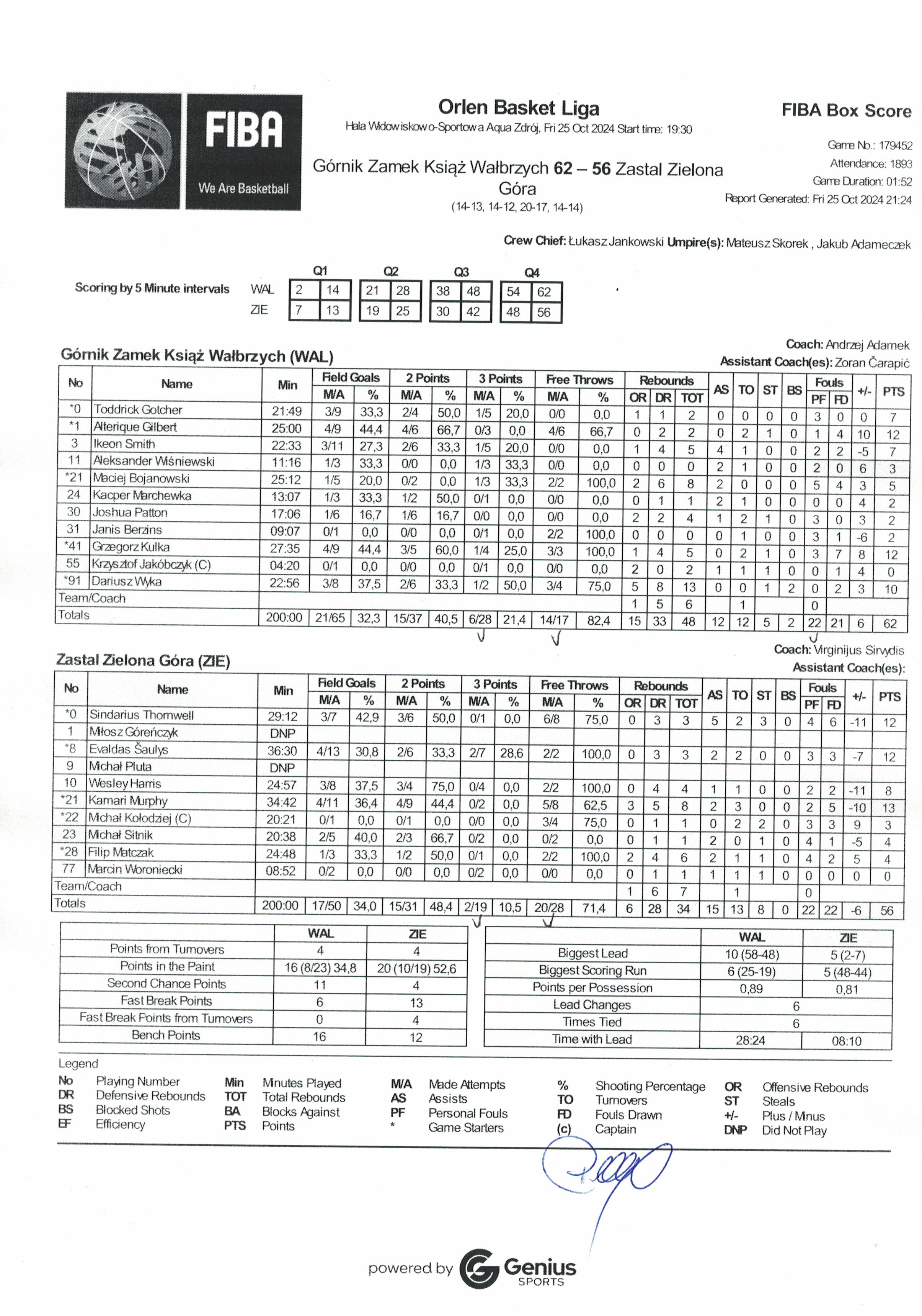 Runda Zasadnicza - 4 kolejka 25.10.2024 / 19:30Hala Widowiskowo-Sportowa Aqua Zdrój, ul. Ratuszowa 6, 58-304 Wałbrzych14:13/14:12/20:17/14:14