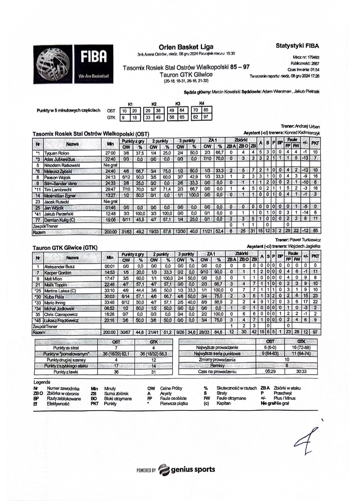 | Punkty graczy z ławki | 36 | 31 |
