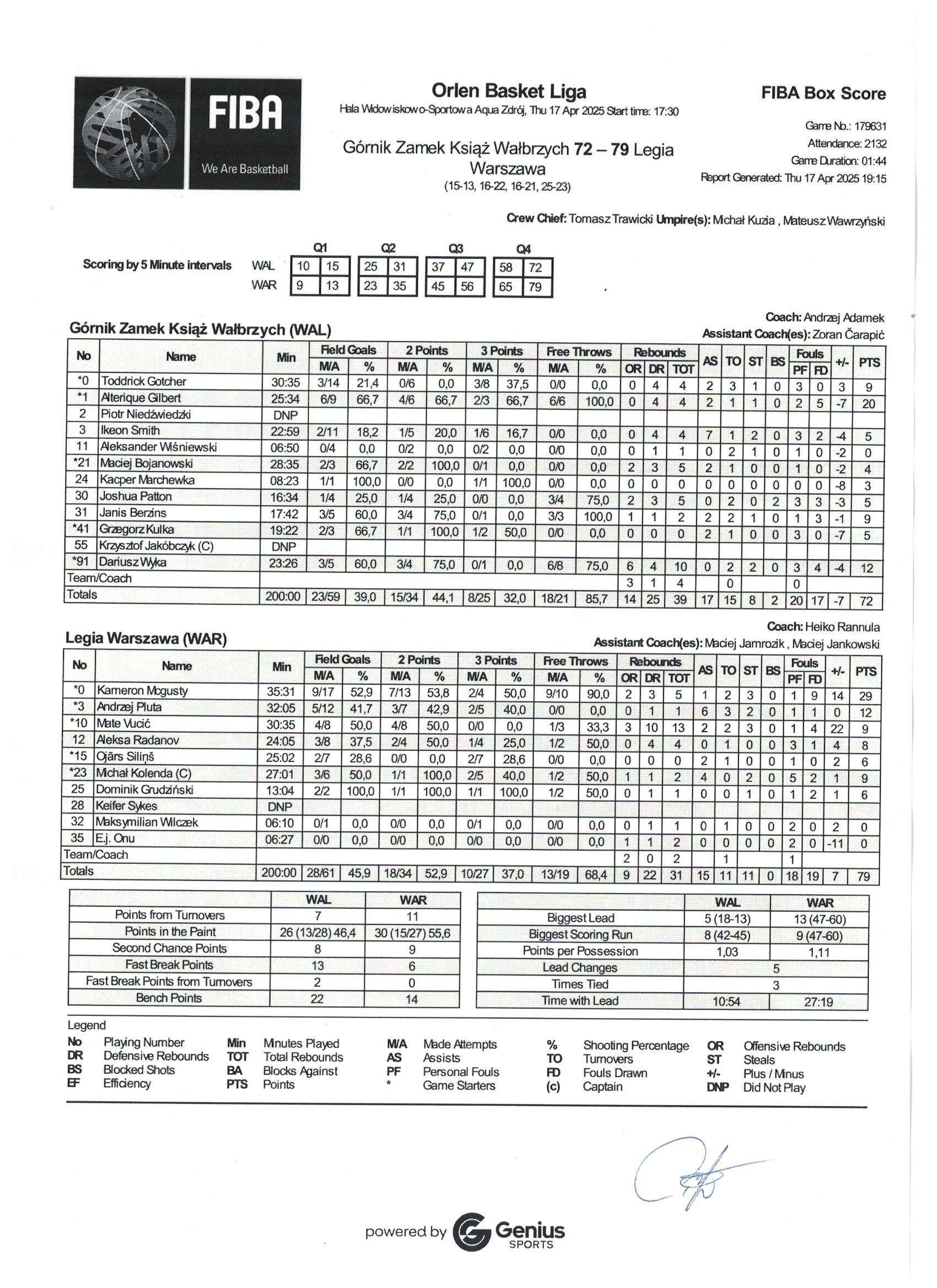 Runda Zasadnicza - 26 kolejka 17.04.2025 / 17:30Hala Widowiskowo-Sportowa Aqua Zdrój, ul. Ratuszowa 6, 58-304 Wałbrzych15:13/16:22/16:21/25:23