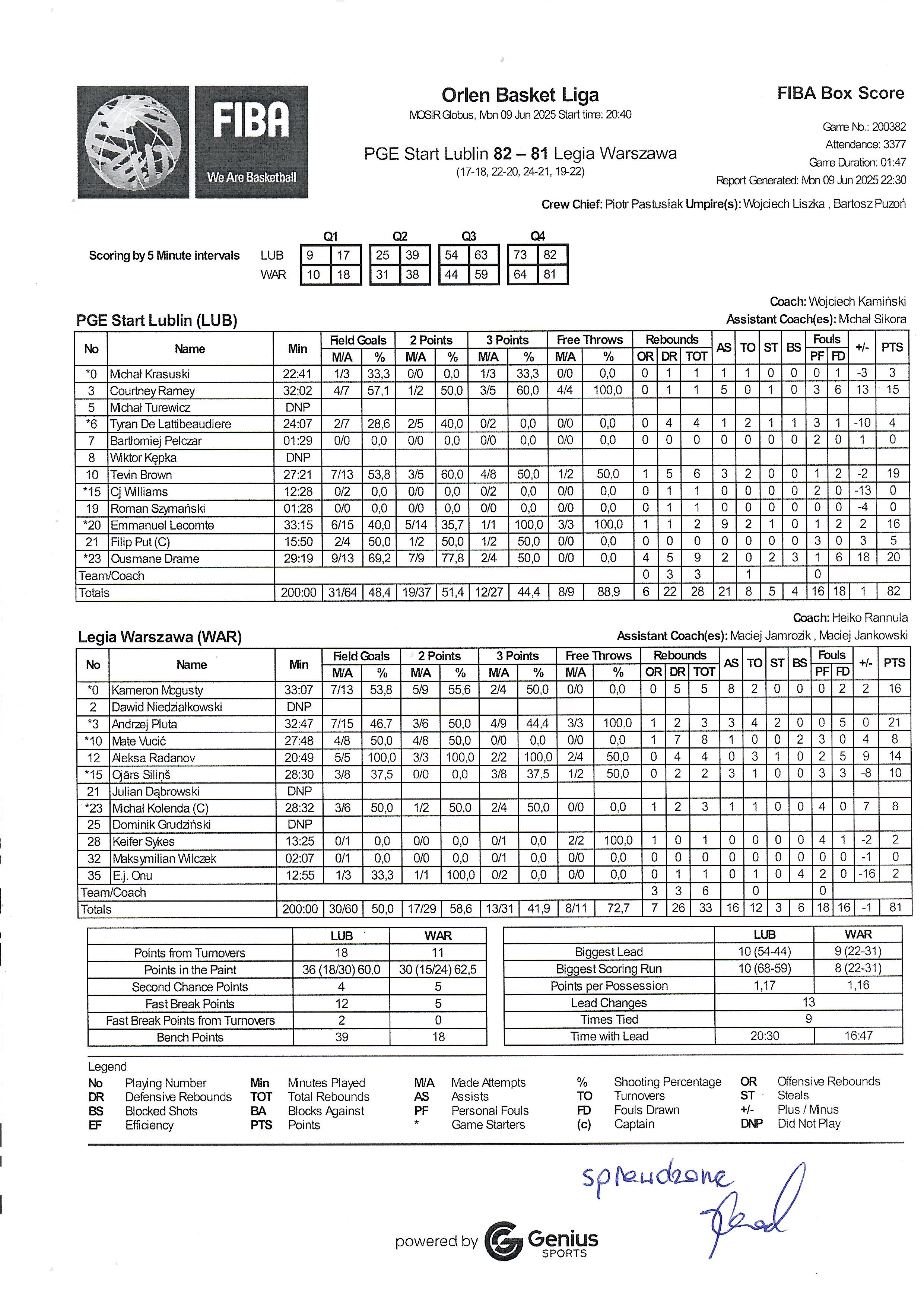 Finał - 1 mecz 9.06.2025 / 20:40MOSiR Globus, Kazimierza Wielkiego 8, 20-611 Lublin17:18/22:20/24:21/19:22