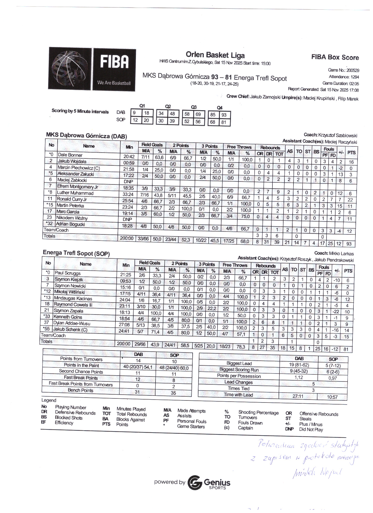 | Punkty graczy z ławki | 31 | 35 |