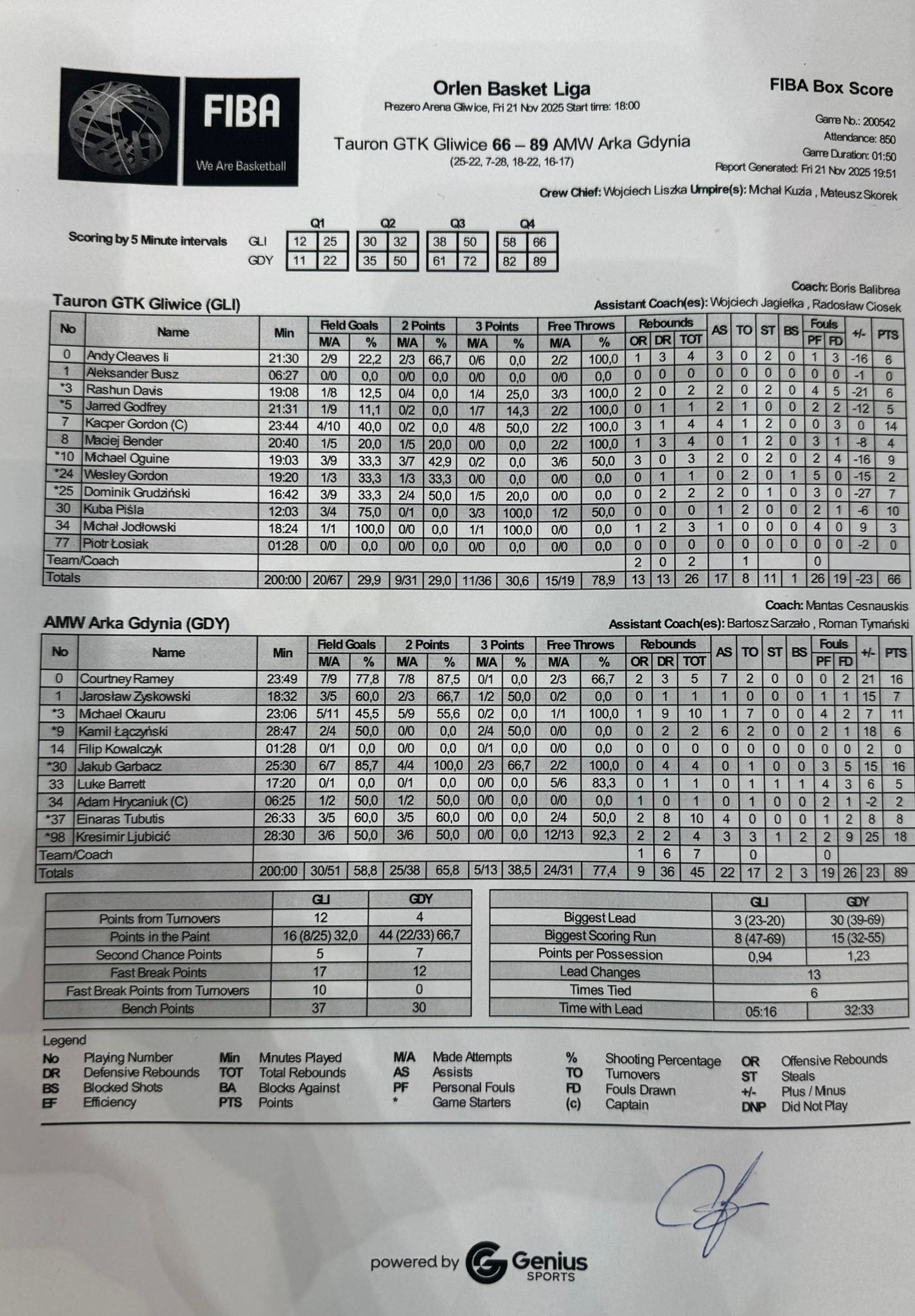 Runda Zasadnicza - 9 kolejka 21.11.2025 / 18:00Prezero Arena Gliwice, Akademicka 50, 44-100 Gliwice25:22/7:28/18:22/16:17