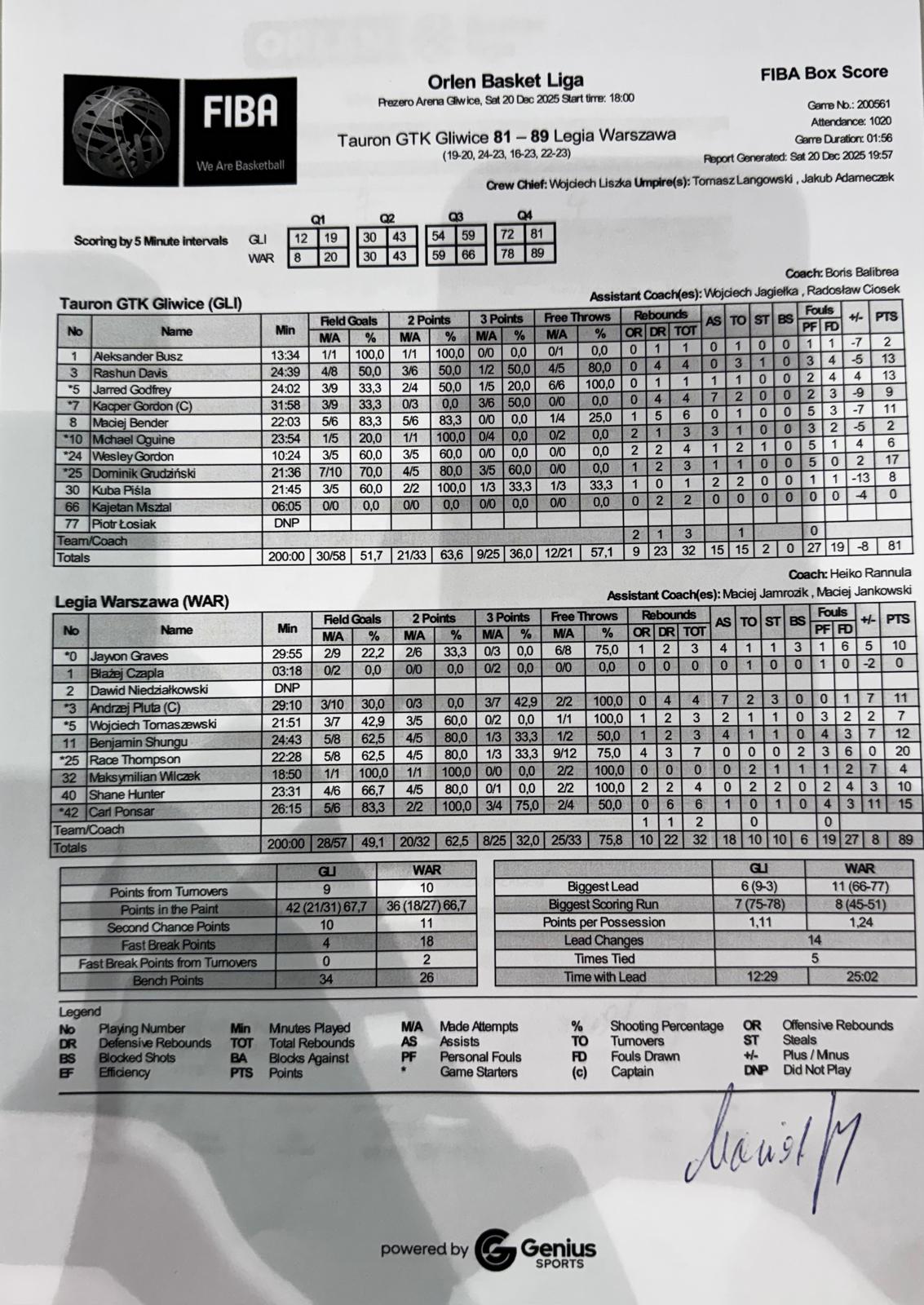 Runda Zasadnicza - 12 kolejka 20.12.2025 / 18:00Prezero Arena Gliwice, Akademicka 50, 44-100 Gliwice19:20/24:23/16:23/22:23