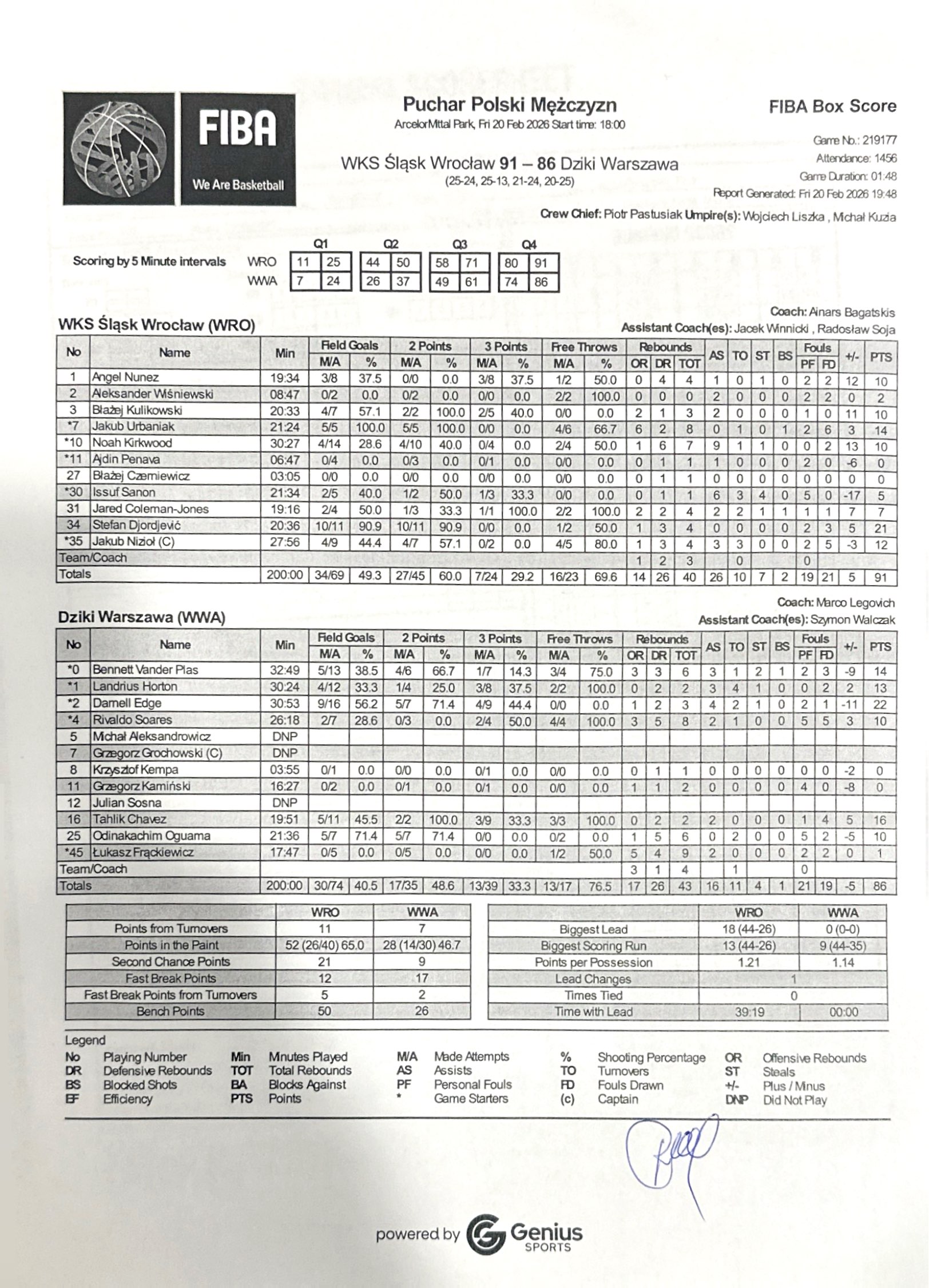 | Punkty graczy z ławki | 50 | 26 |