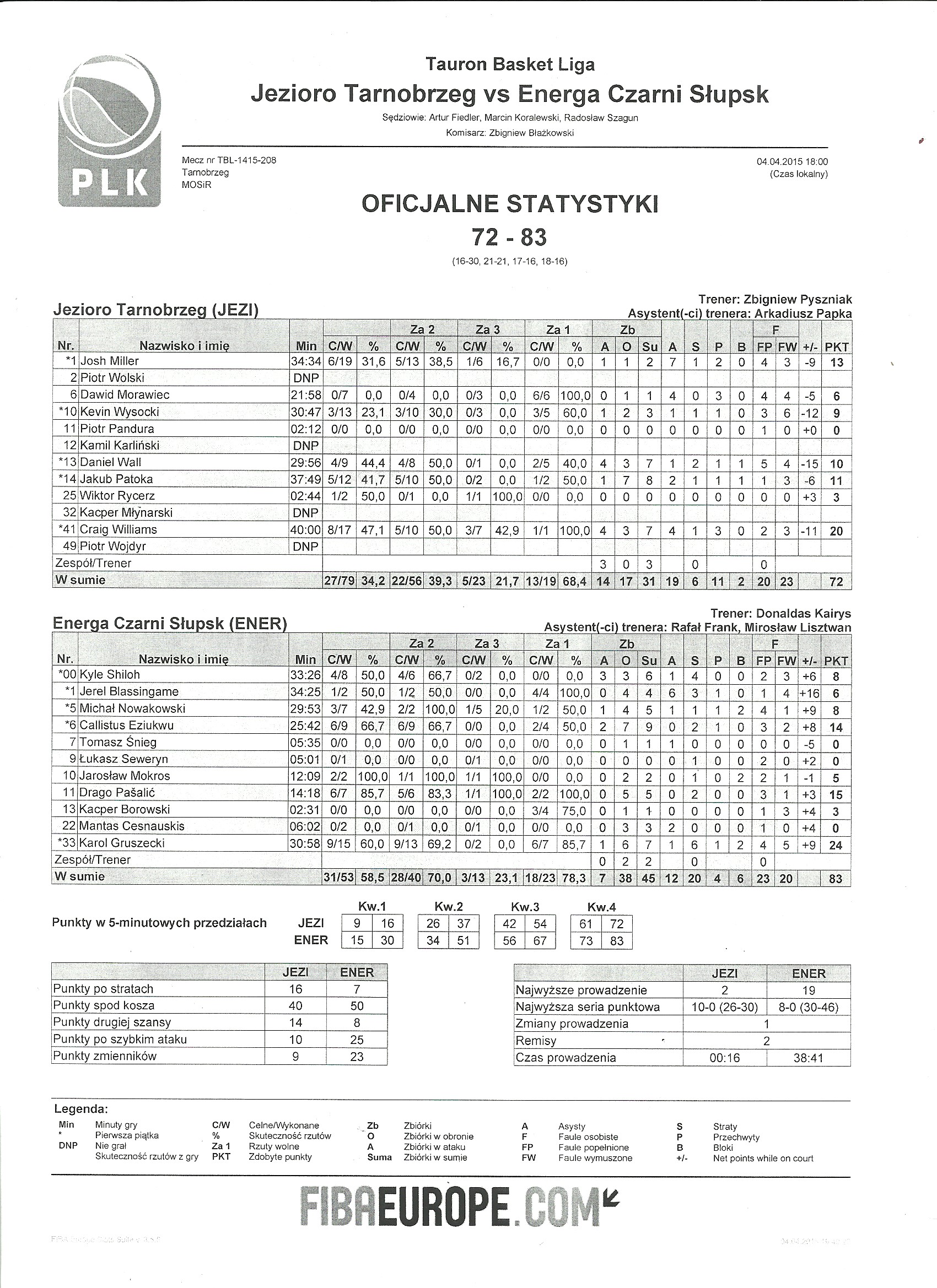 Runda Zasadnicza - 26 kolejka 4.04.2015 / 18:00MOSiR, Al. Niepodległości 2, 39-400 Tarnobrzeg16:30/21:21/17:16/18:16