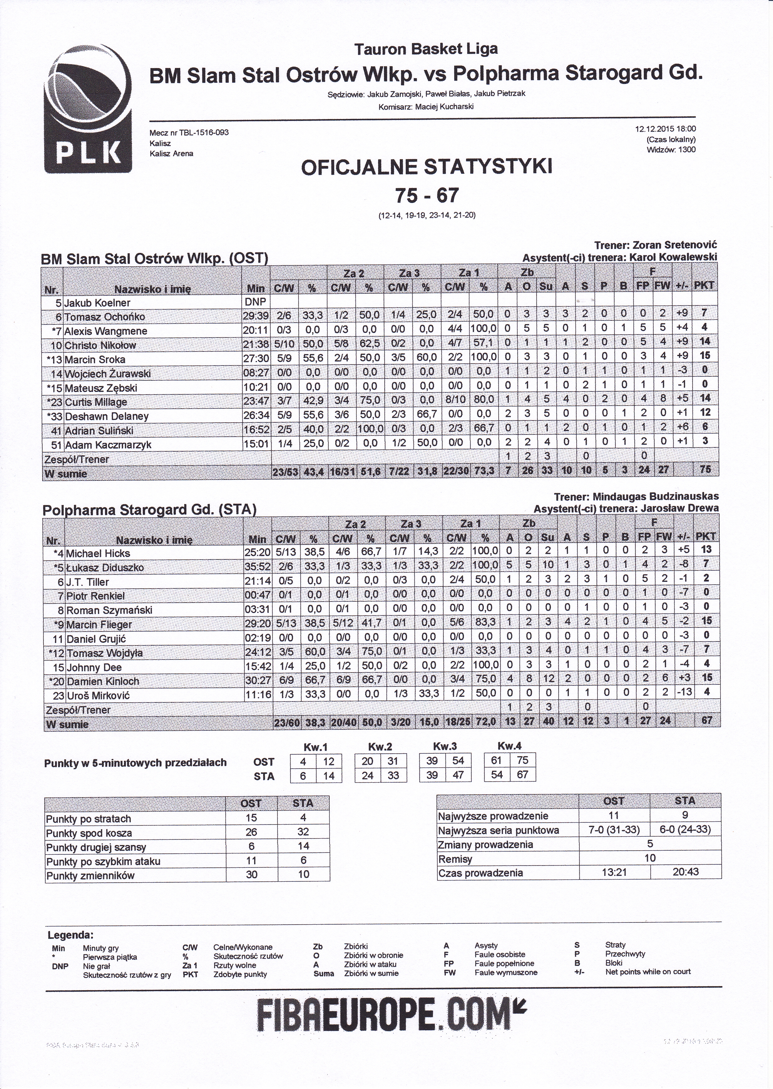 Runda Zasadnicza - 10. kolejka 12.12.2015 / 18:00Kalisz Arena, ul. Prymasa Stefana Wyszyńskiego 22-24, 62-800 Kalisz12:14/19:19/23:14/21:20