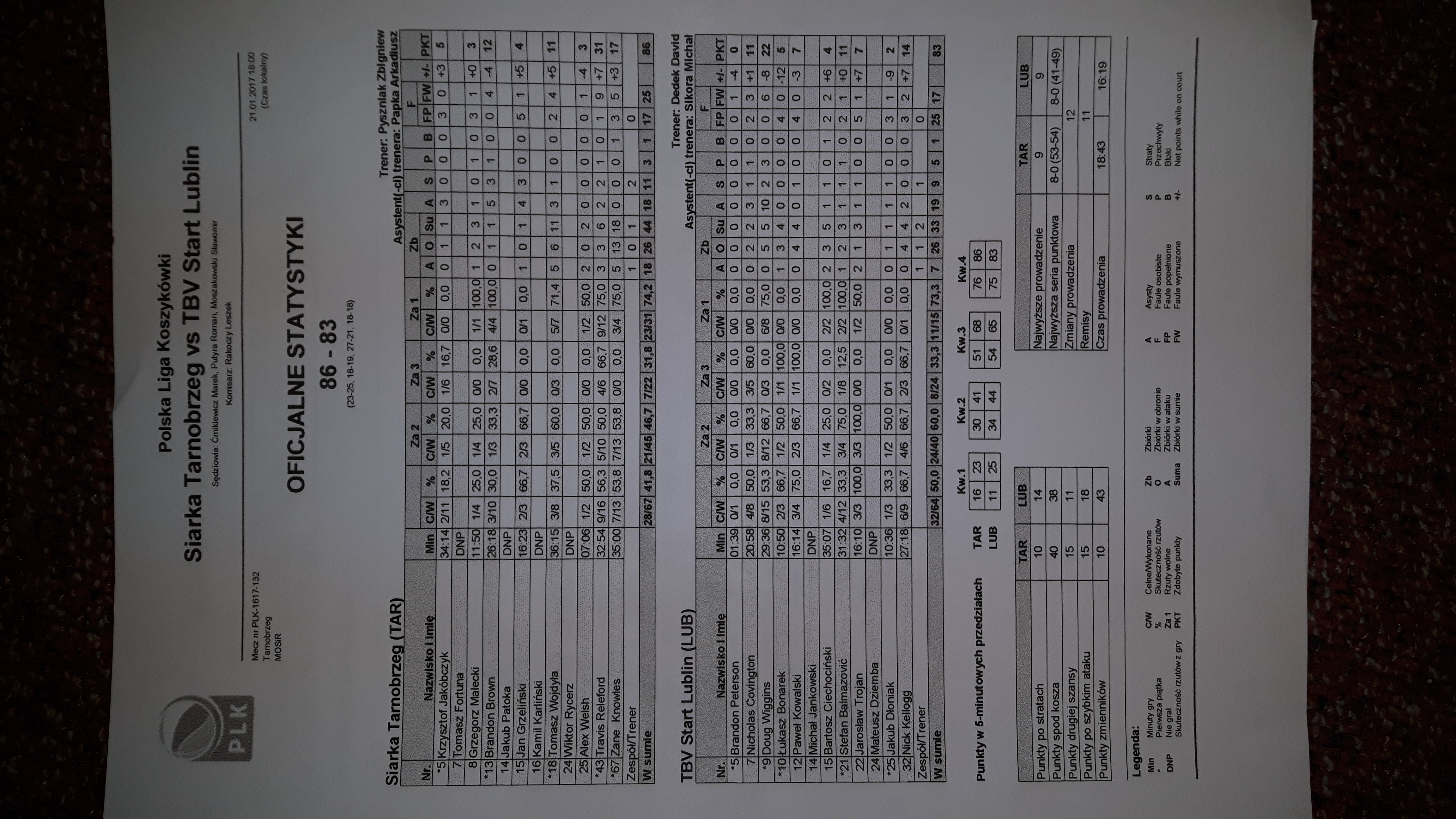 Runda Zasadnicza - 15 kolejka 21.01.2017 / 18:00MOSiR, Al. Niepodległości 2, 39-400 Tarnobrzeg23:25/18:19/27:21/18:18