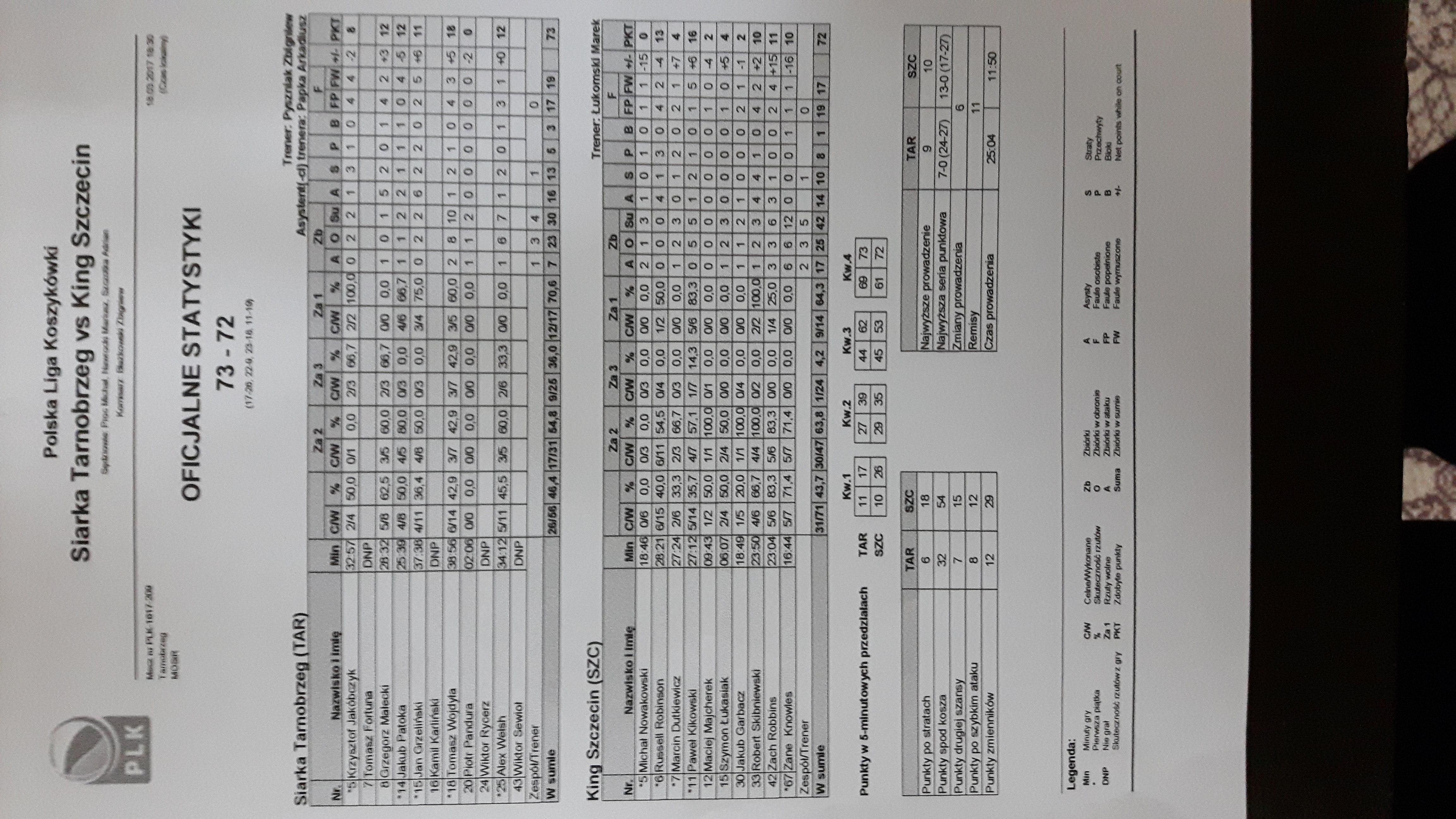 Runda Zasadnicza - 23 kolejka 18.03.2017 / 18:30MOSiR, Al. Niepodległości 2, 39-400 Tarnobrzeg17:26/22:9/23:18/11:19