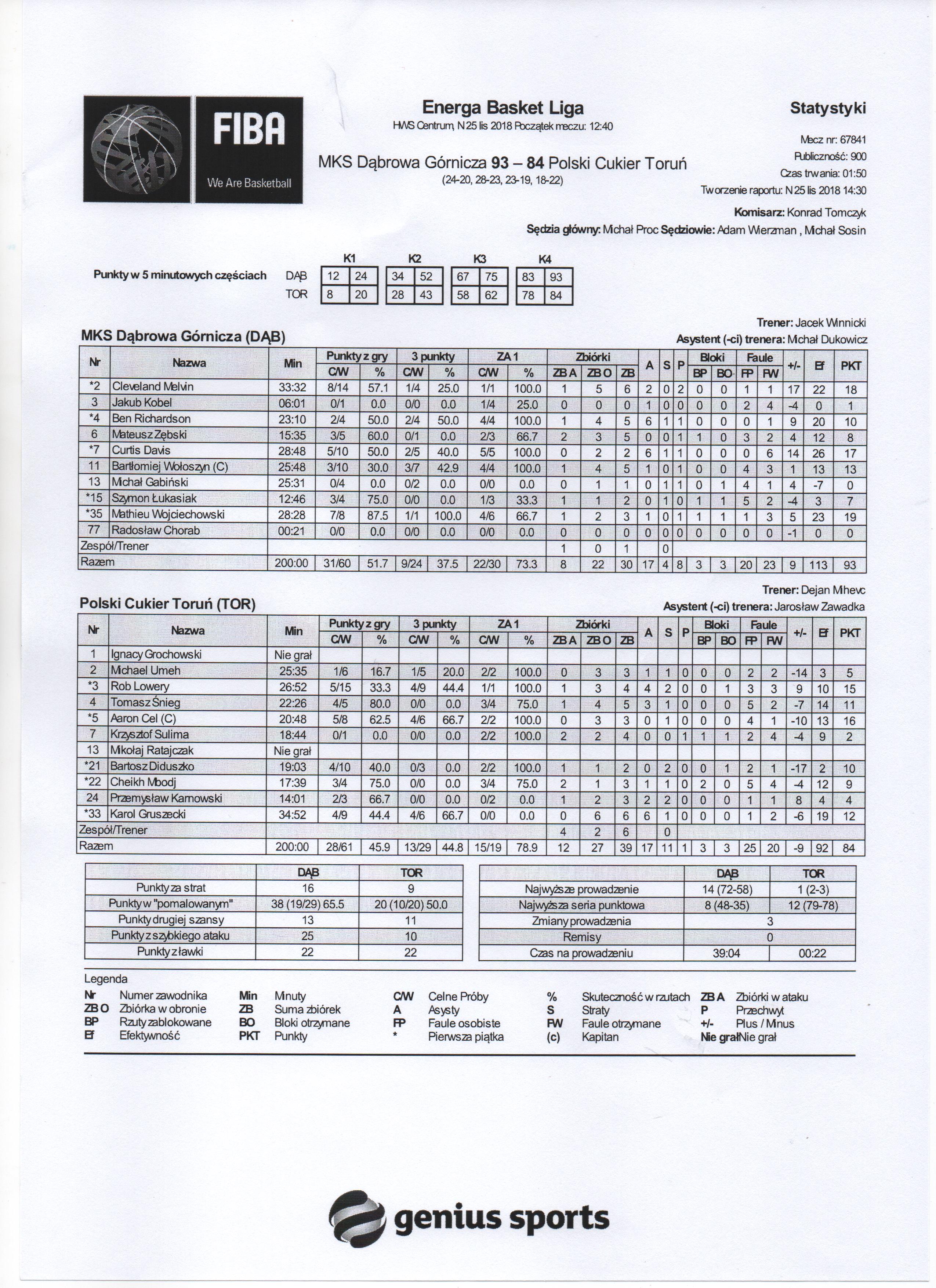 Runda Zasadnicza - 8 kolejka 25.11.2018 / 12:40HWS Centrum im.Z.Cybulskiego, Al. Róż 3, 41-300 Dąbrowa Górnicza24:20/28:23/23:19/18:22