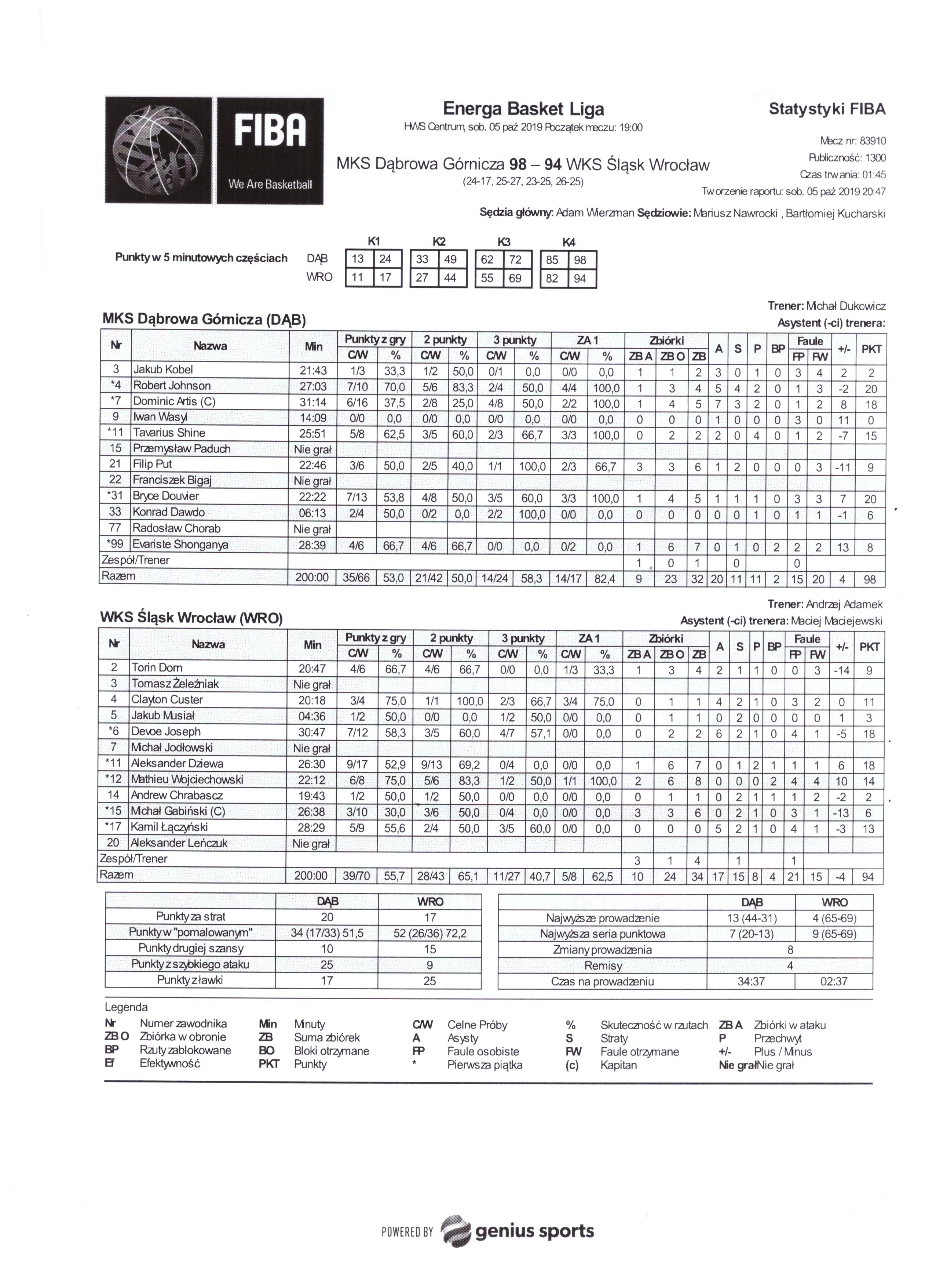 Runda Zasadnicza - 2 kolejka 5.10.2019 / 19:00